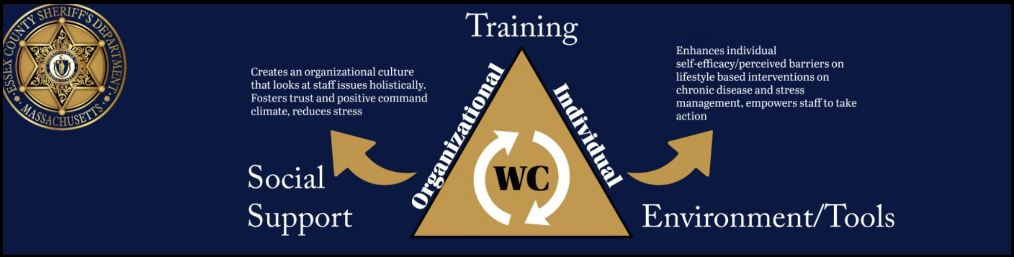 A mental health support system that offers a variety of methods for employees to seek care. Access to mental health providers specializing in law enforcement and strengthening current peer support networks. In addition health promotion activities to reduce the stigma associated with seeking mental health treatment.